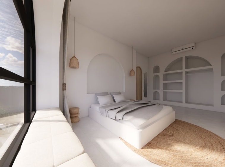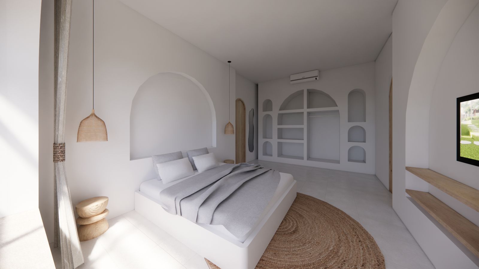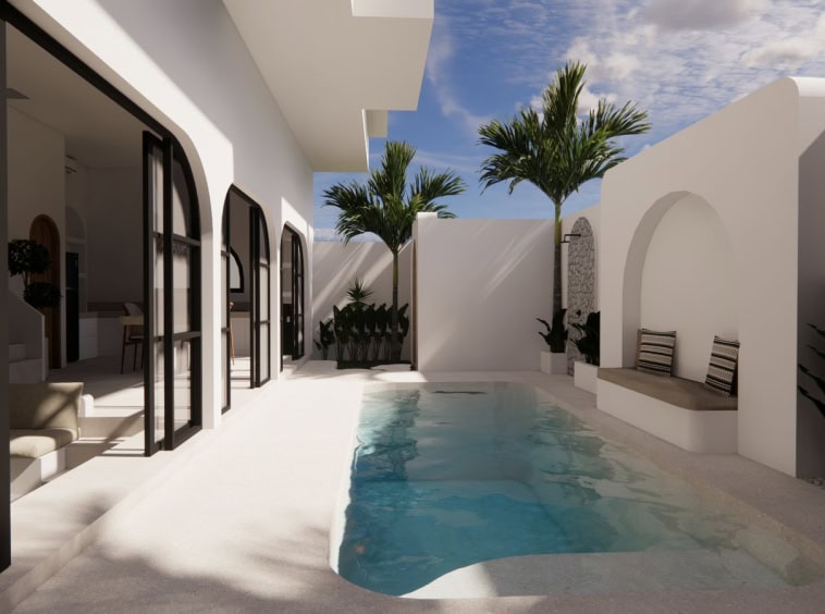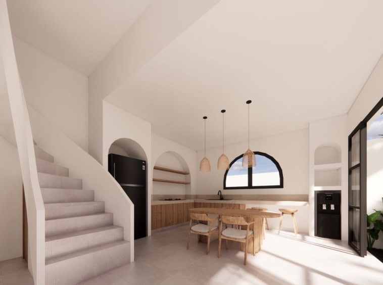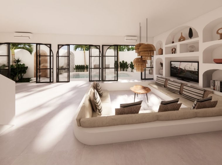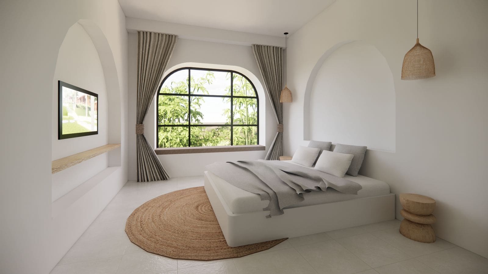 Discover this elegant 3-bedroom villa in Tumbak Bayuh, perfectly positioned just minutes from Pererenan and Canggu. Designed with Mediterranean flair, the villa features two spacious bedrooms, a versatile third room, 2.5 bathrooms, a private pool, two storage rooms, and a stylish rooftop terrace ideal for relaxing or entertaining. Set on 132 m² of land with a 192 m² build, it offers a closed, concept kitchen, living, and dining area, fully furnished and ready to move in.
