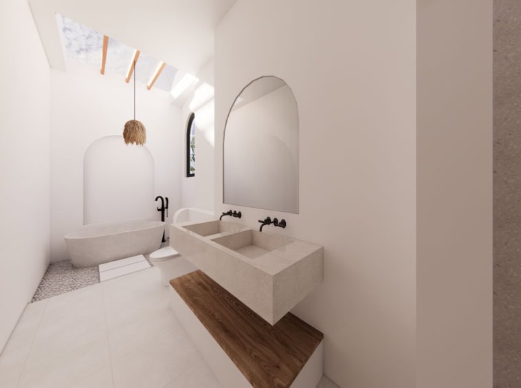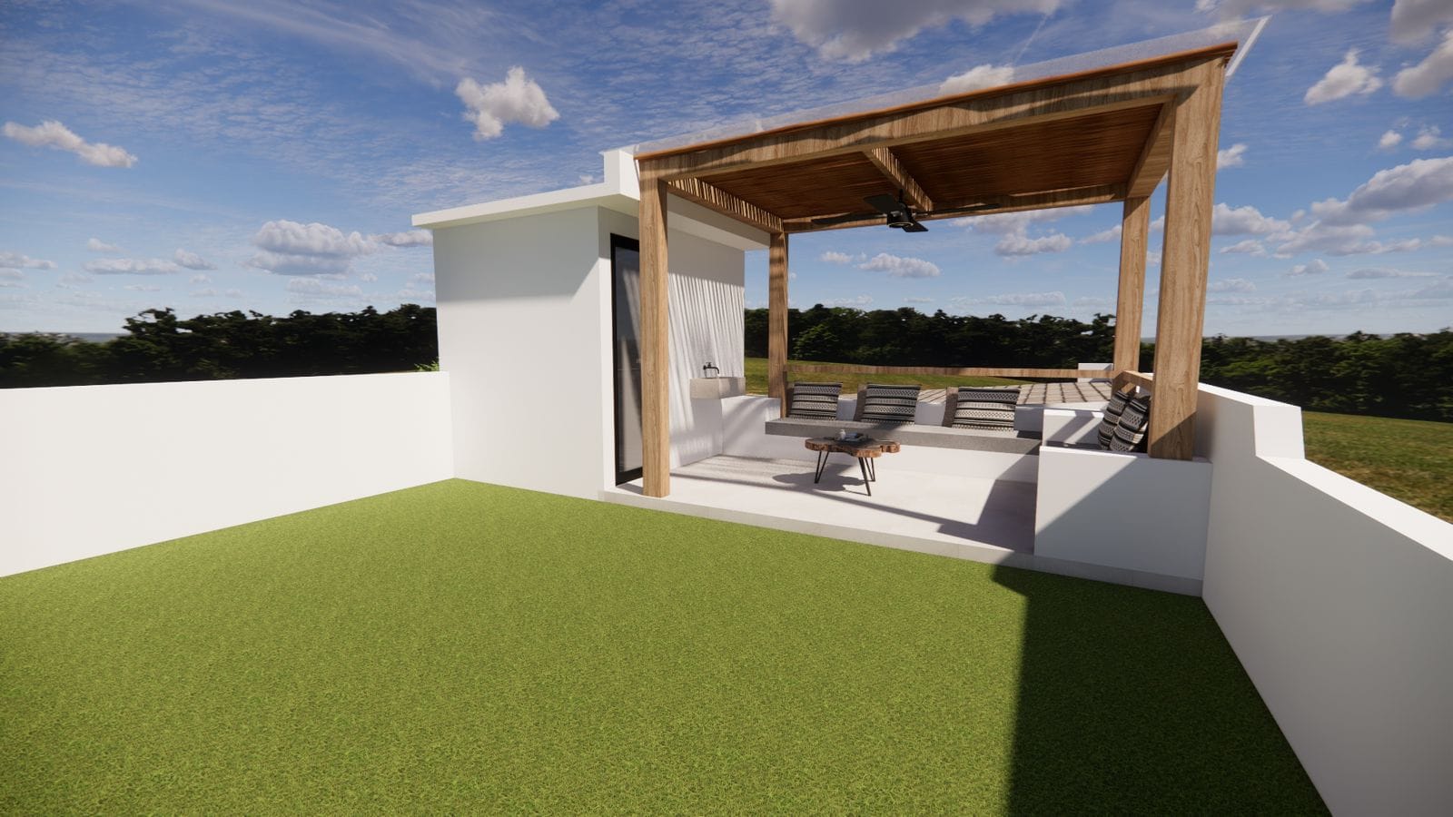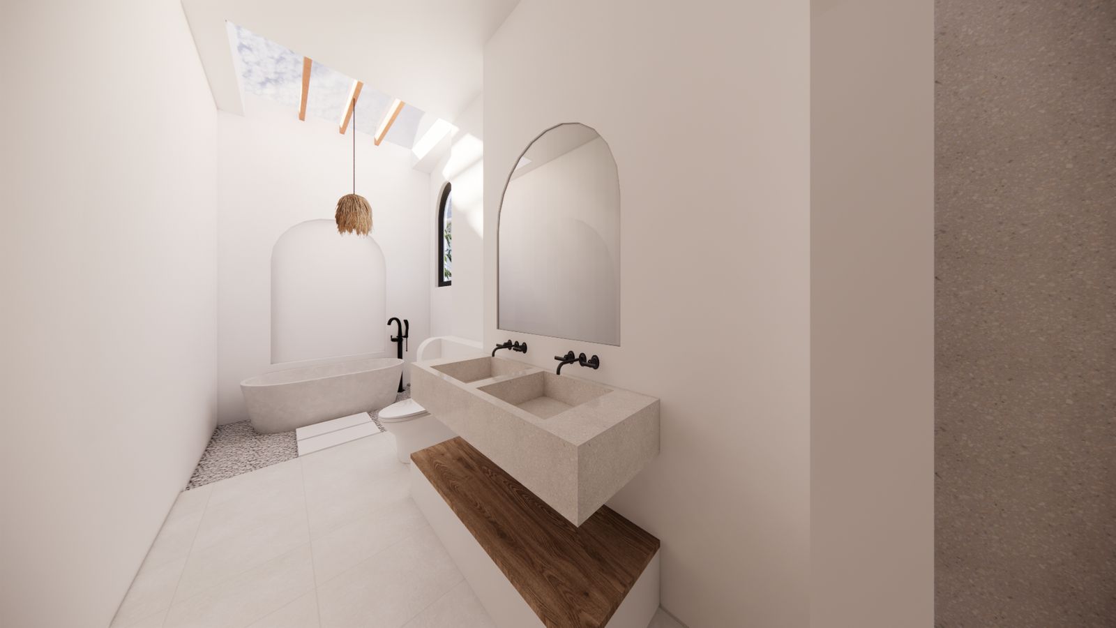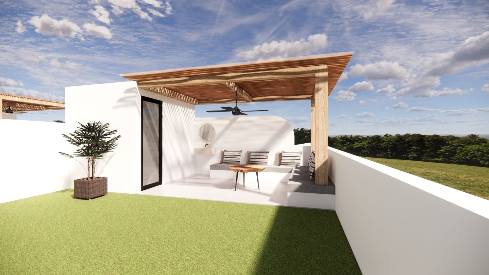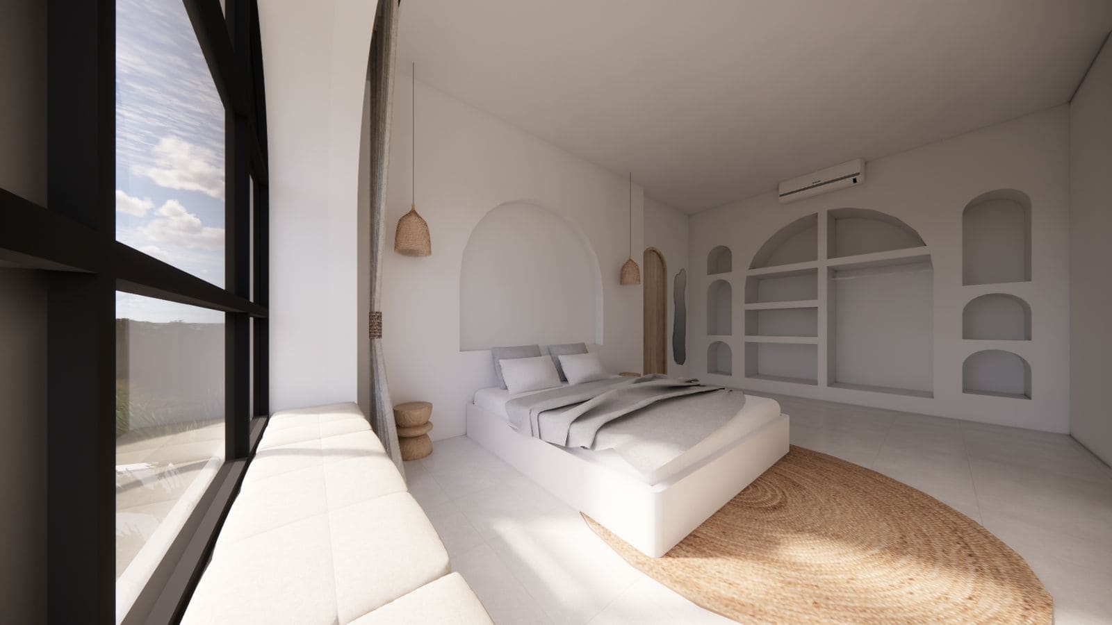 Discover this elegant 3-bedroom villa in Tumbak Bayuh, perfectly positioned just minutes from Pererenan and Canggu. Designed with Mediterranean flair, the villa features two spacious bedrooms, a versatile third room, 2.5 bathrooms, a private pool, two storage rooms, and a stylish rooftop terrace ideal for relaxing or entertaining. Set on 132 m² of land with a 192 m² build, it offers a closed, concept kitchen, living, and dining area, fully furnished and ready to move in.