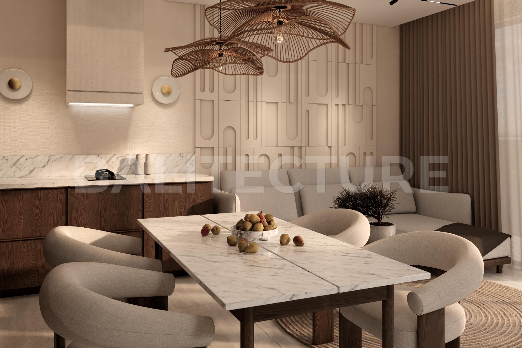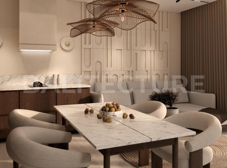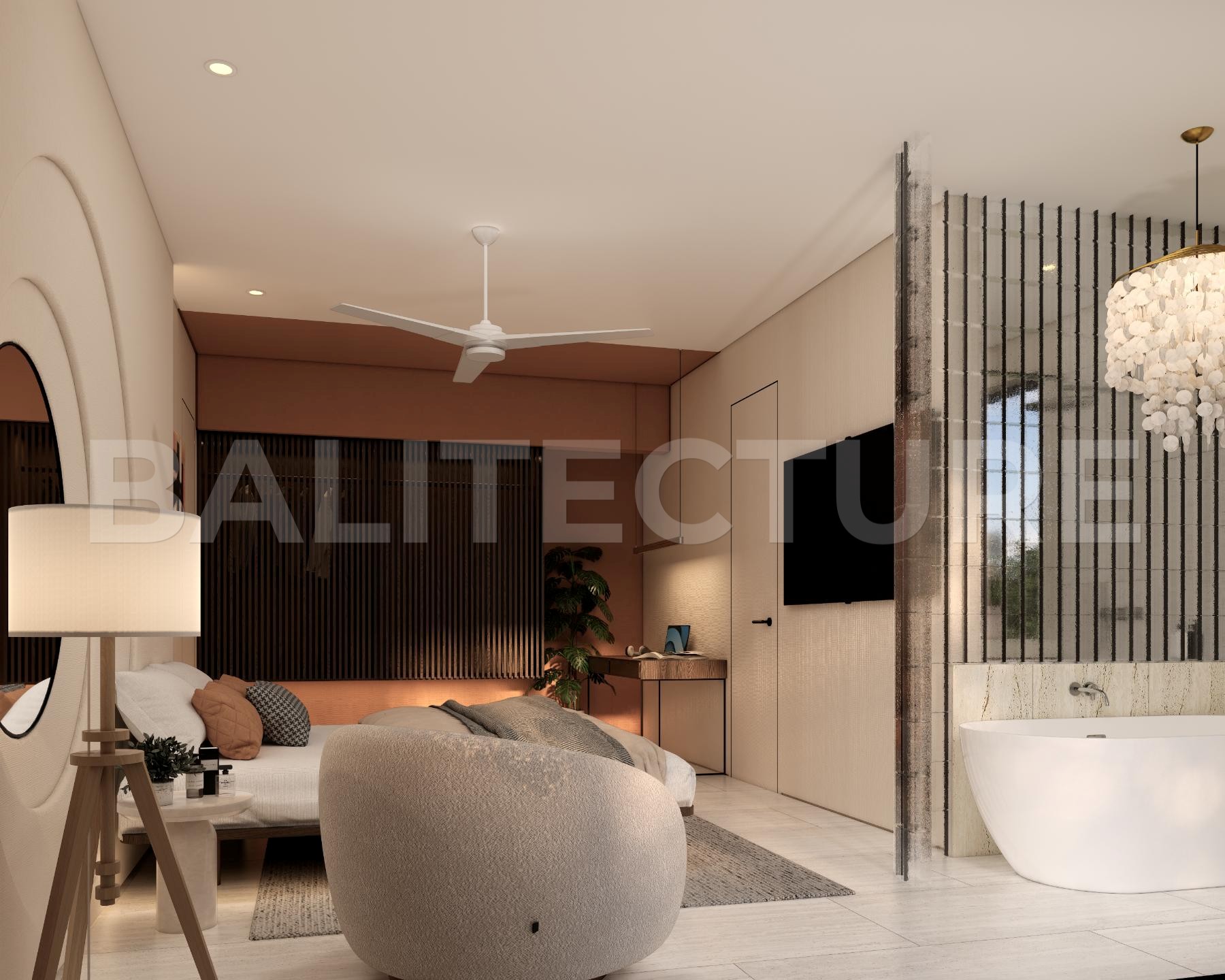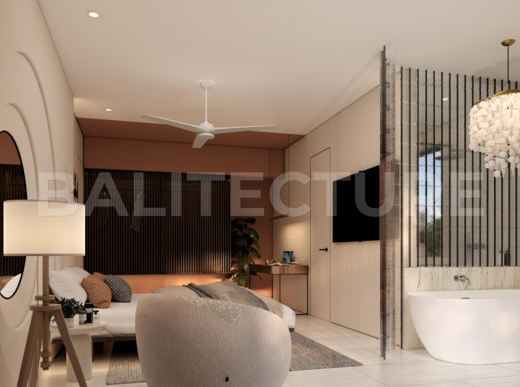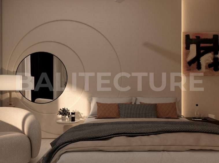 Each villa reflects the harmony of Japandi × Boho Tropic architecture, combining modern elegance, tropical warmth, and cultural artistry. Local Balinese artists contributed to the development’s identity through murals, sculptures, and bas-reliefs, creating a truly “living gallery” environment.