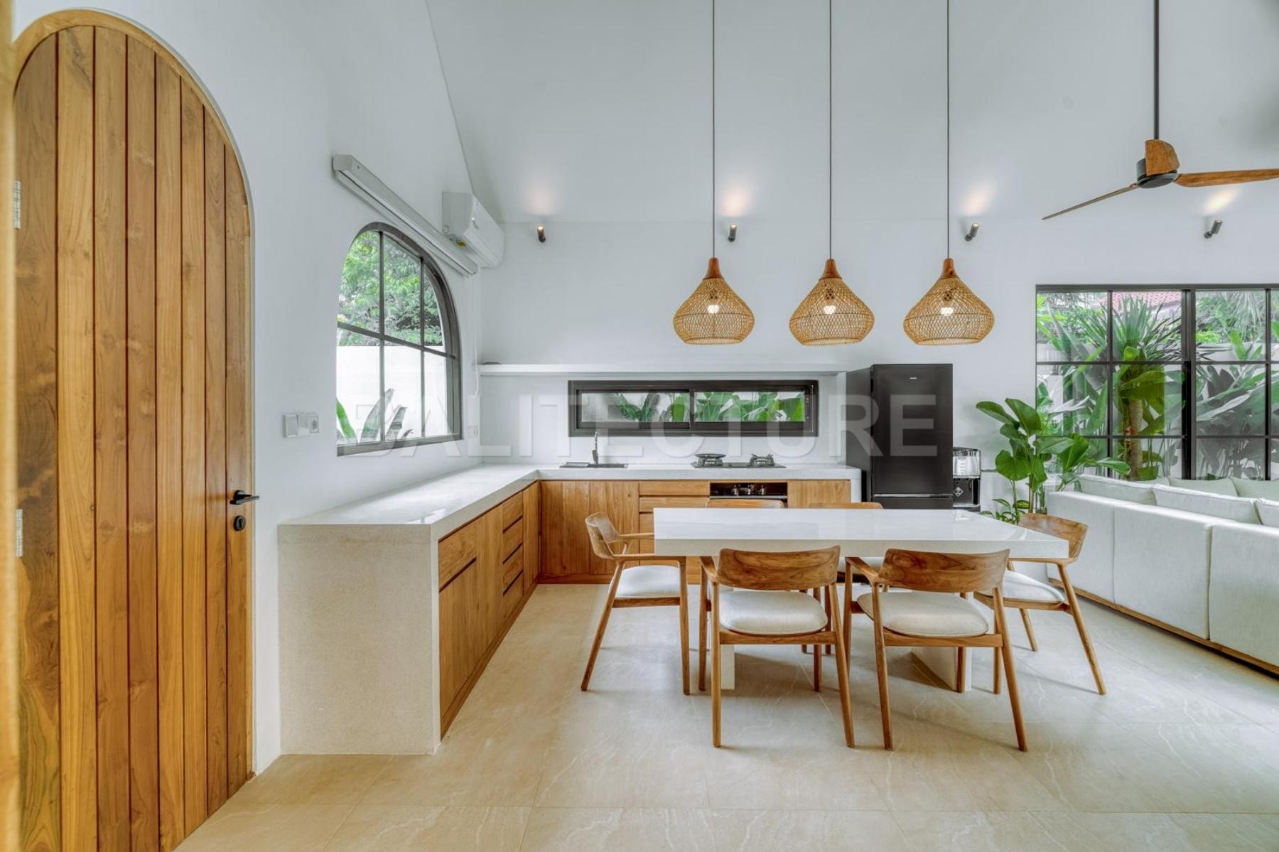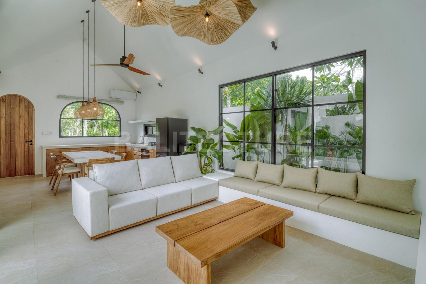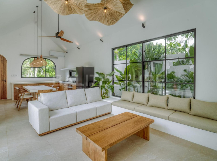 Set on a 166 m² plot with an 89 m² building, the villa features two bedrooms with pool views and ensuite bathrooms, a bright open-plan living room with high ceilings, and a stylish kitchen fitted with Modena appliances, a Samsung refrigerator, and a terrazzo dining table. Outdoor amenities include a 6.5m x 2.5m private pool, sunken sofa lounge, and landscaped garden—creating the ideal setting for relaxation and entertaining.