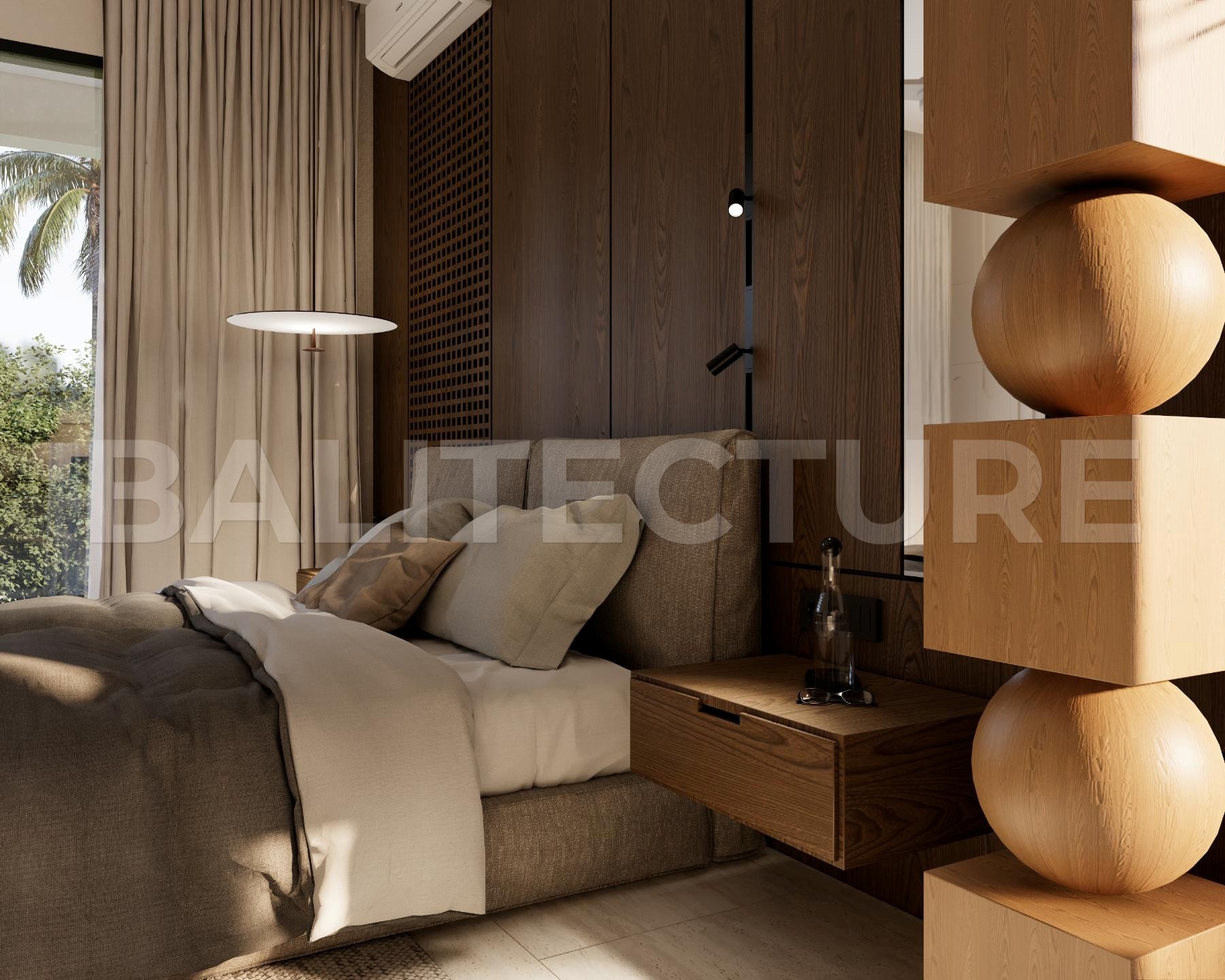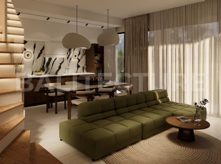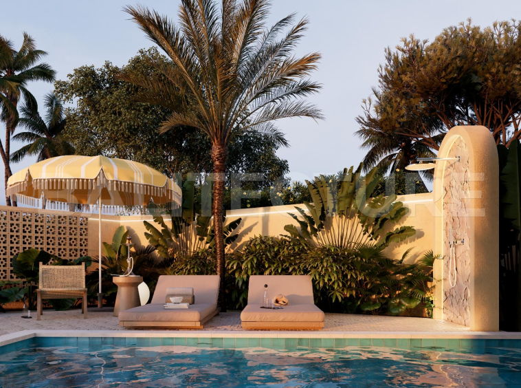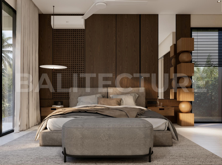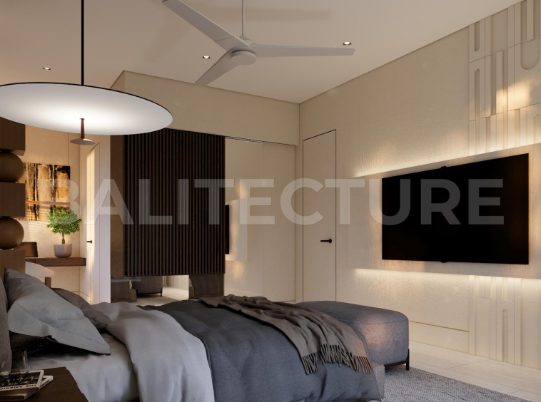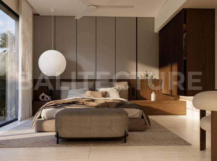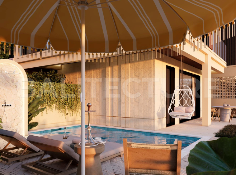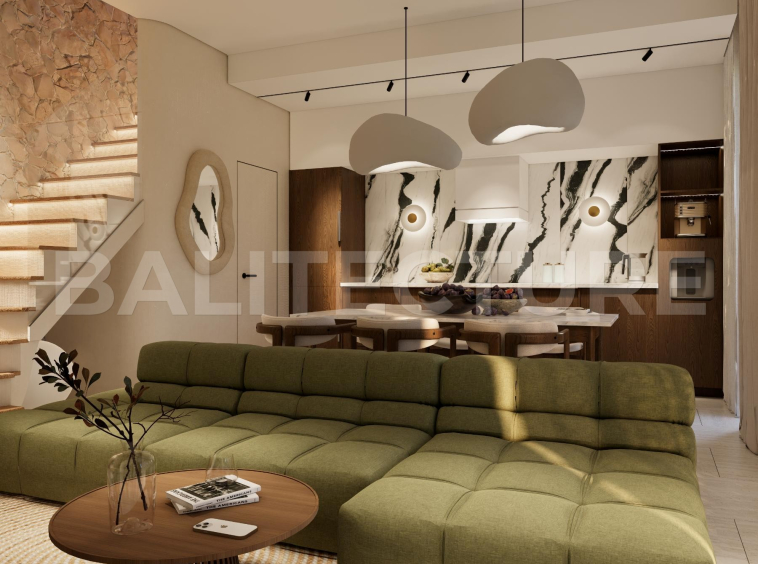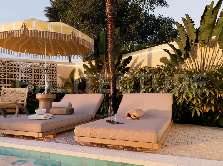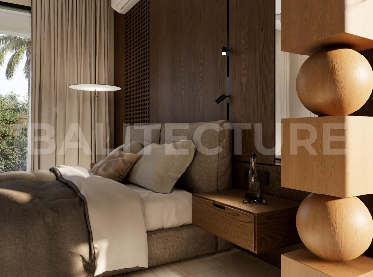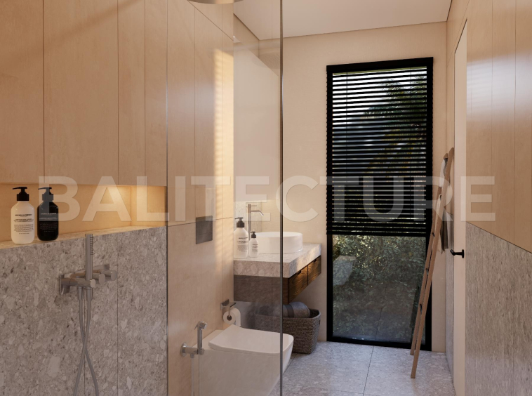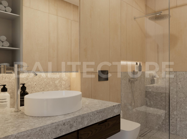 The development showcases a Japandi × Boho Tropic architectural style, enhanced by local Balinese artists who crafted murals, sculptures, and bas-reliefs that turn the complex into a “living art gallery.” A unique bathhouse and wellness hub—complete with saunas, hammam, massage rooms, rooftop lounge, yoga zones, and restaurant—forms the social heart of the community, combining wellness, art, and leisure in one inspiring environment.