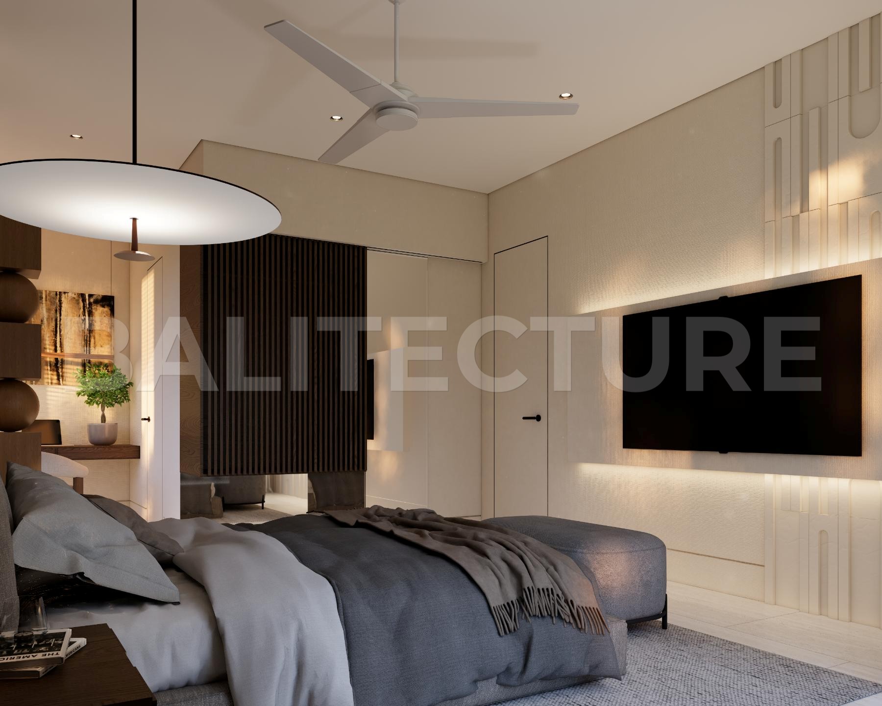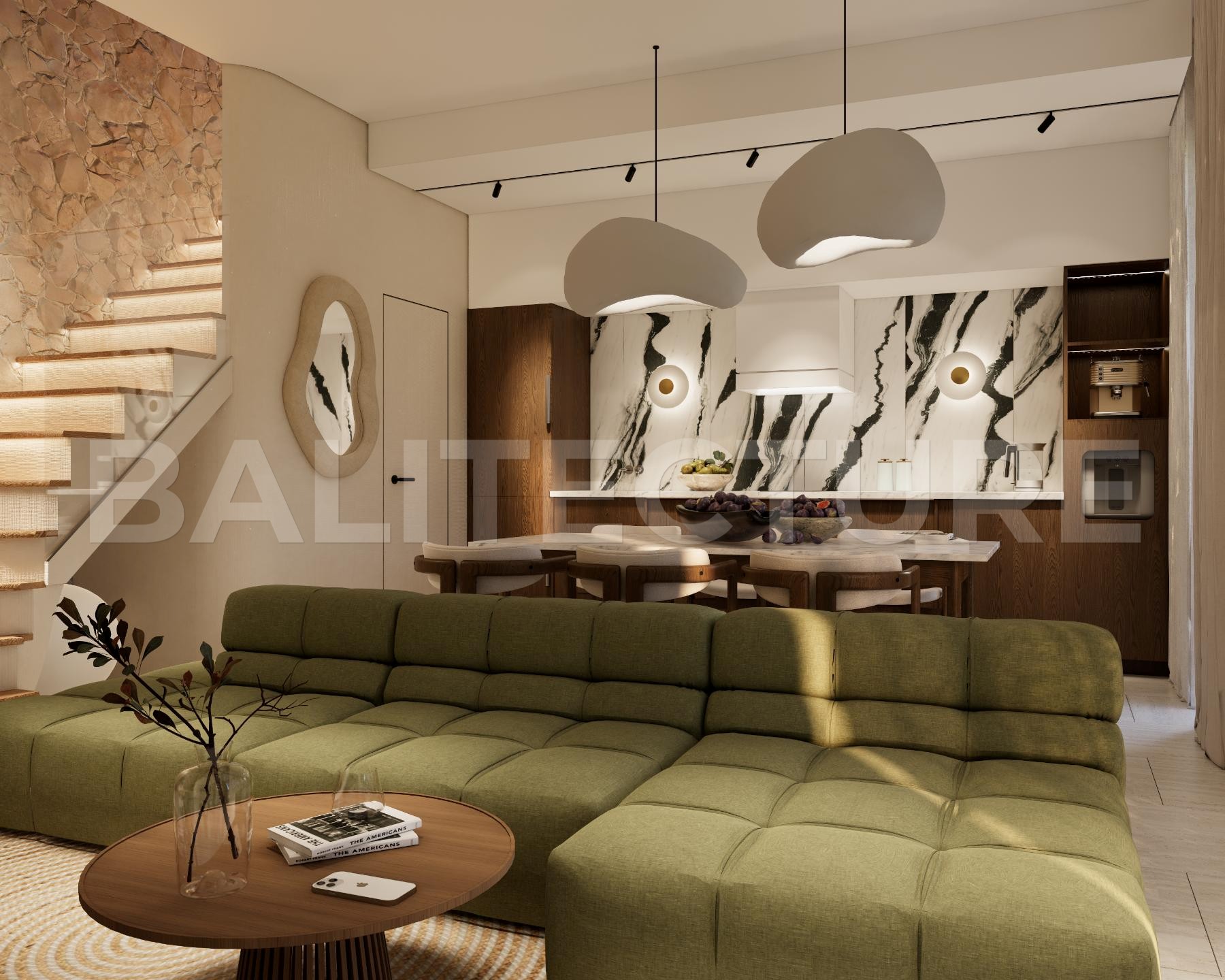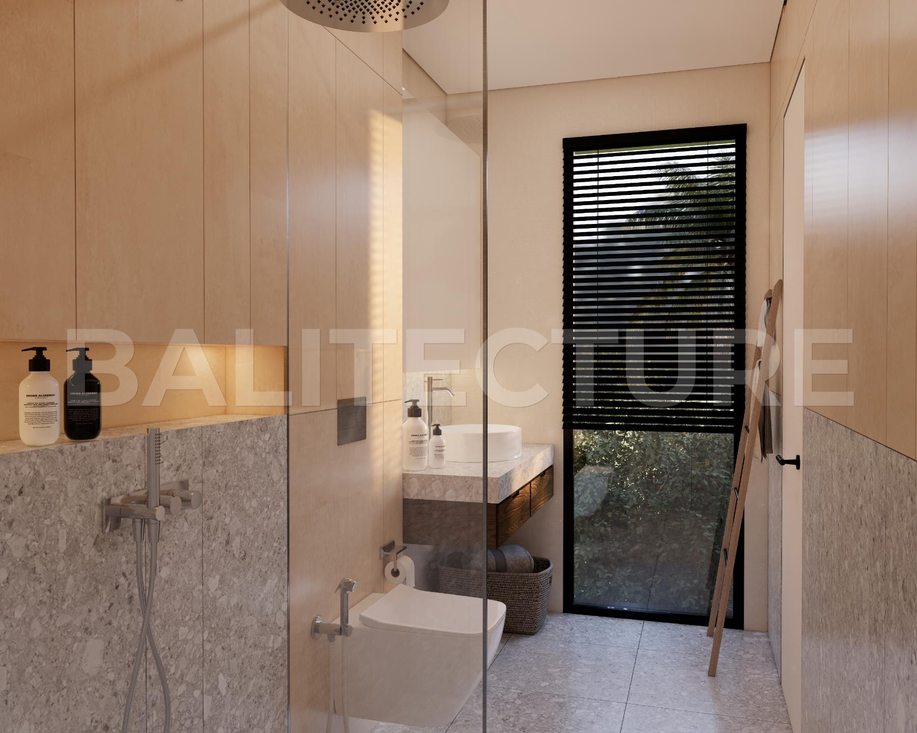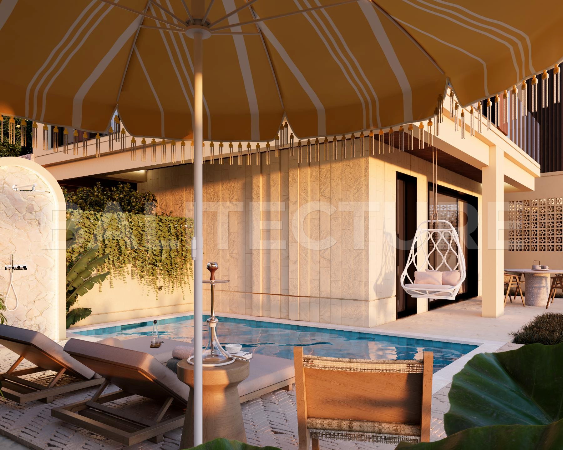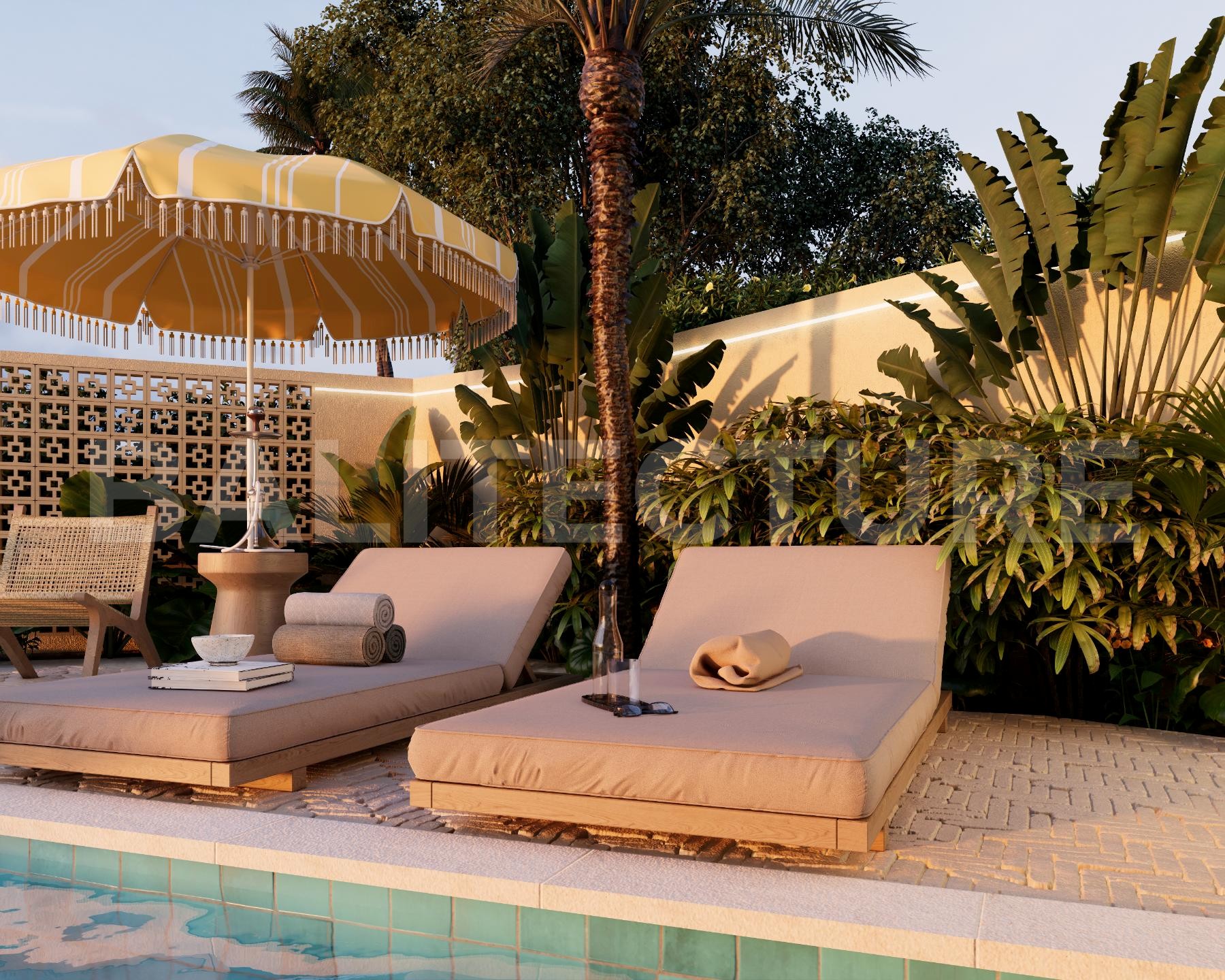 The development showcases a Japandi × Boho Tropic architectural style, enhanced by local Balinese artists who crafted murals, sculptures, and bas-reliefs that turn the complex into a “living art gallery.” A unique bathhouse and wellness hub—complete with saunas, hammam, massage rooms, rooftop lounge, yoga zones, and restaurant—forms the social heart of the community, combining wellness, art, and leisure in one inspiring environment.