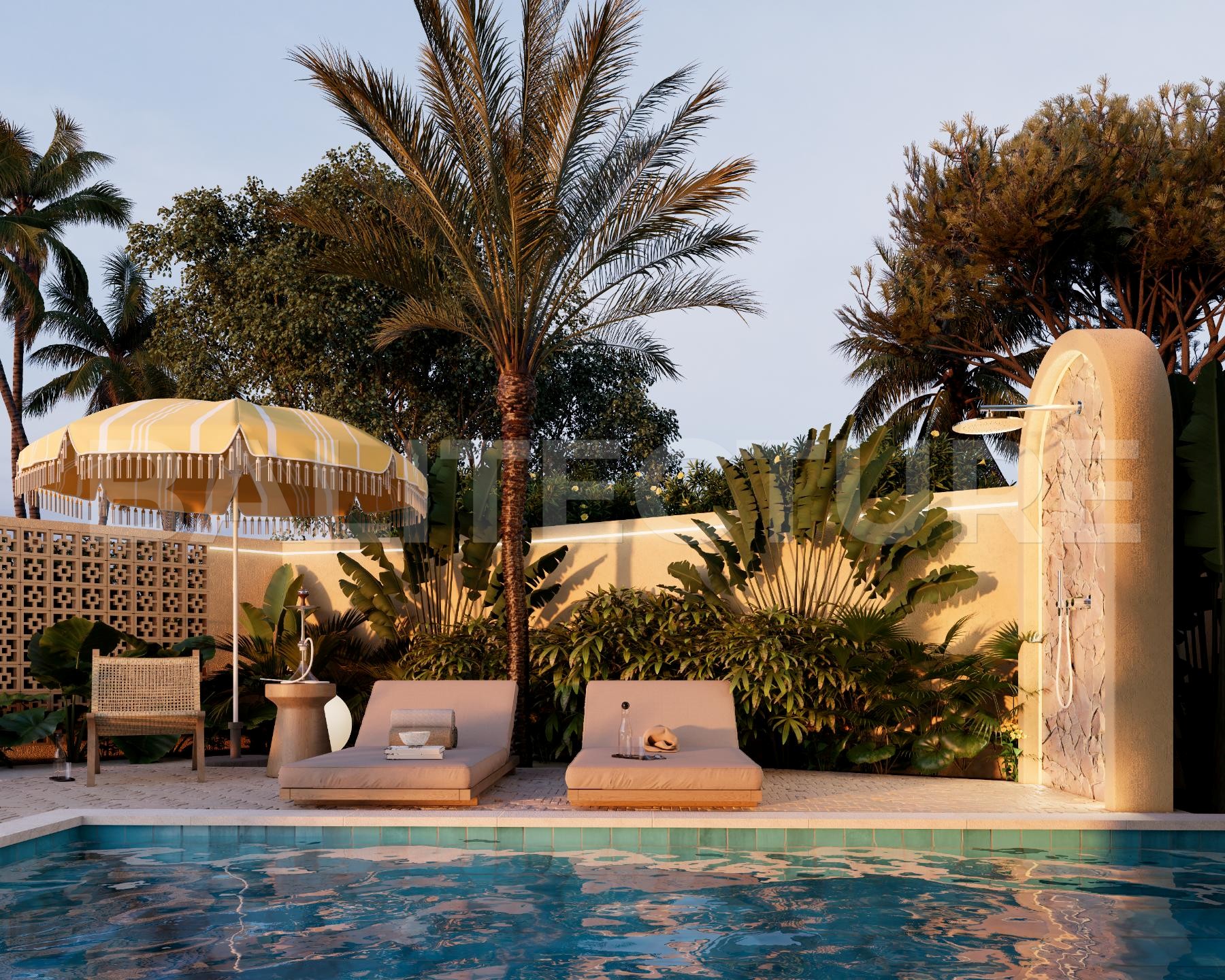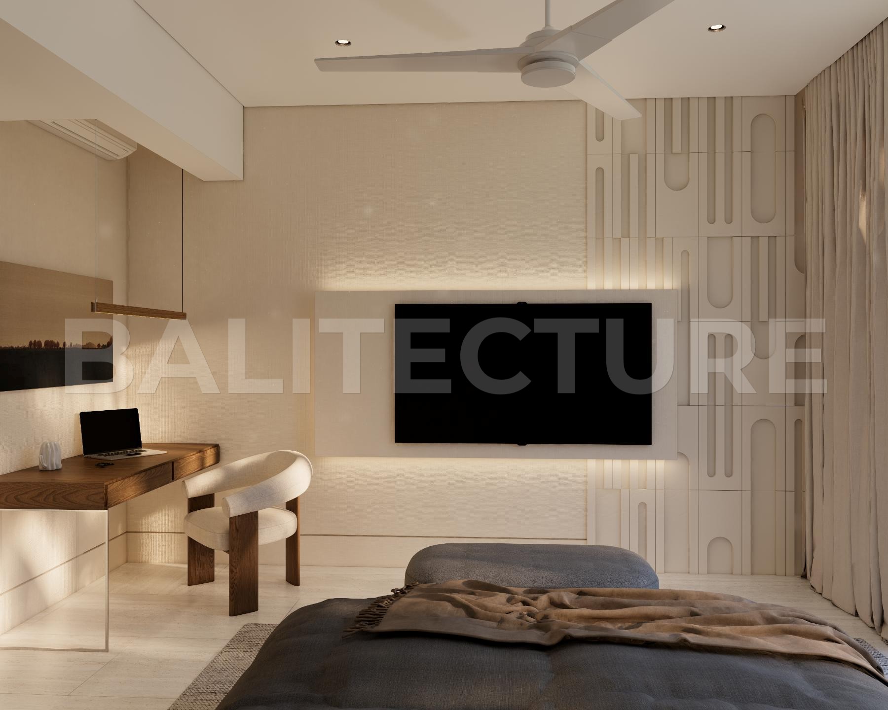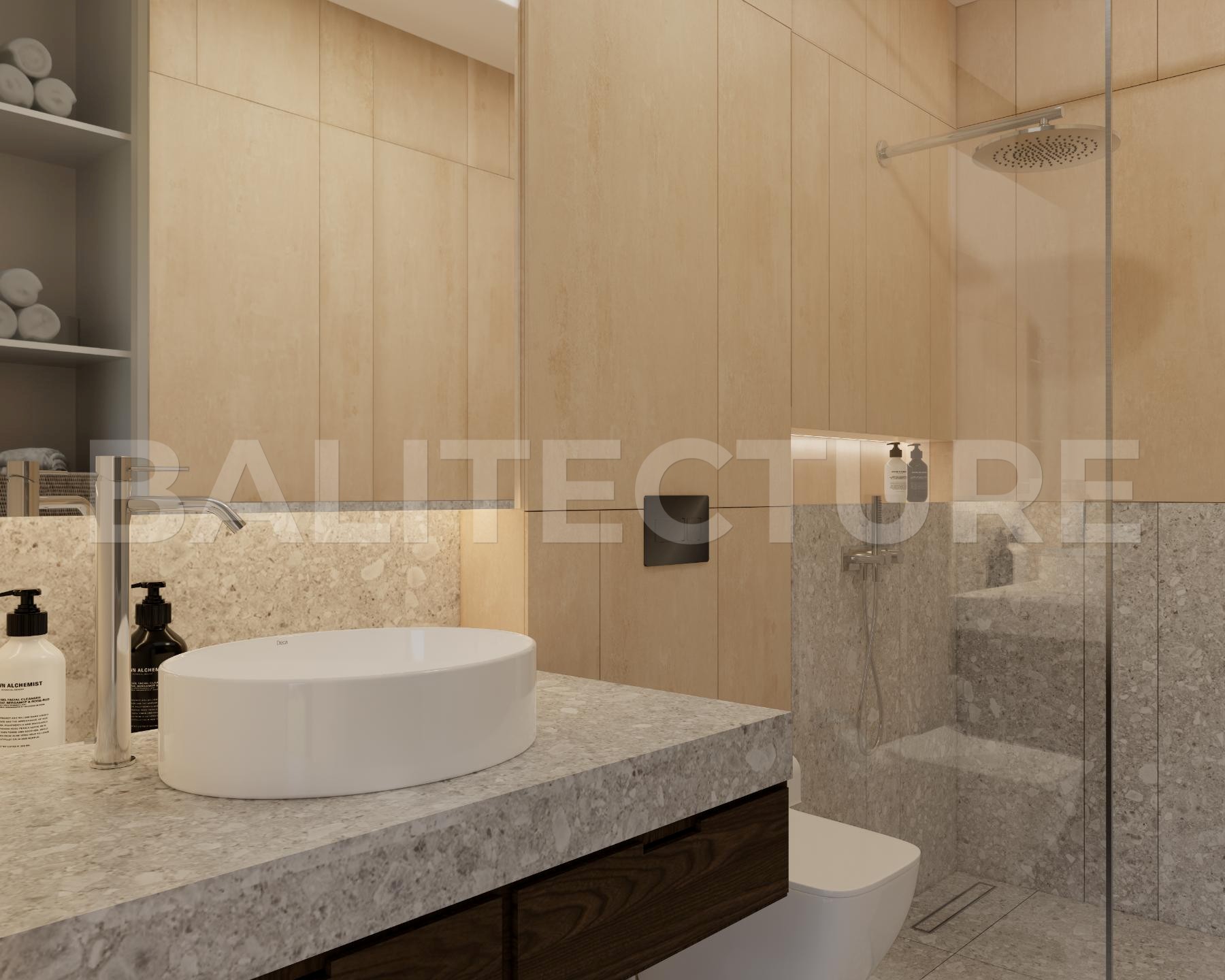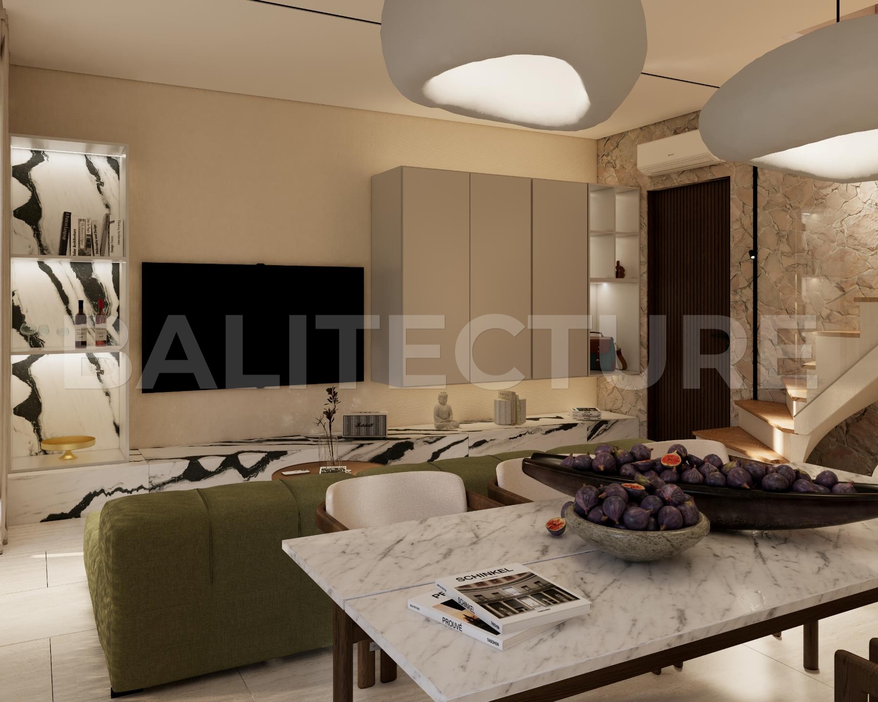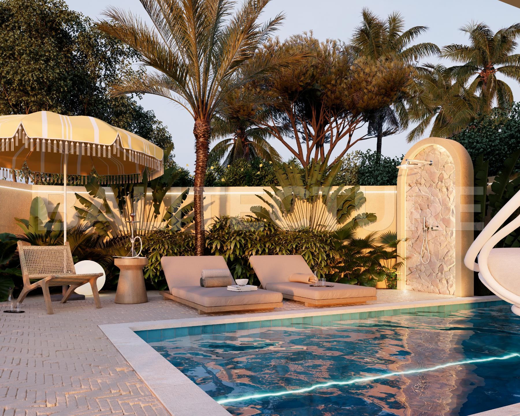 The development showcases a Japandi × Boho Tropic architectural style, enhanced by local Balinese artists who crafted murals, sculptures, and bas-reliefs that turn the complex into a “living art gallery.” A unique bathhouse and wellness hub—complete with saunas, hammam, massage rooms, rooftop lounge, yoga zones, and restaurant—forms the social heart of the community, combining wellness, art, and leisure in one inspiring environment.