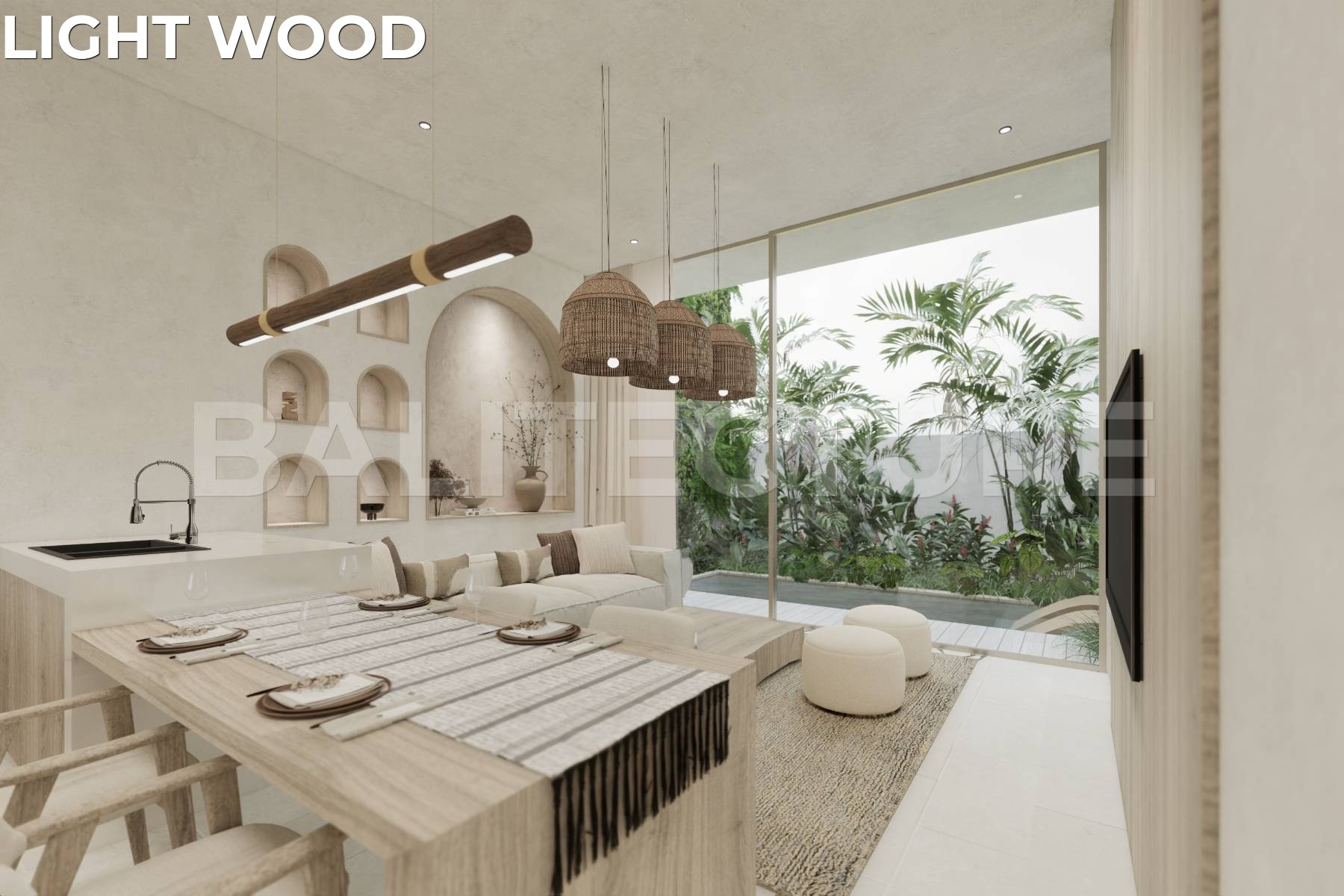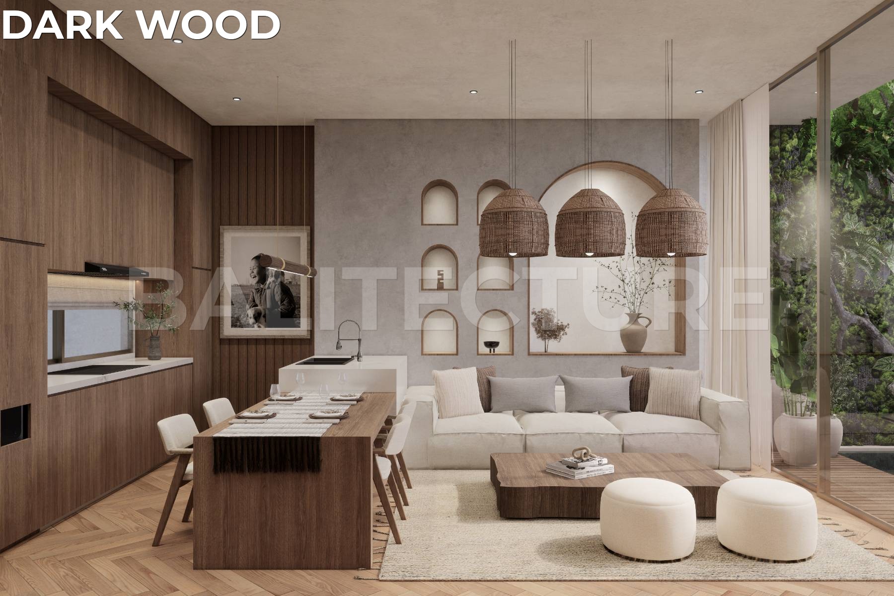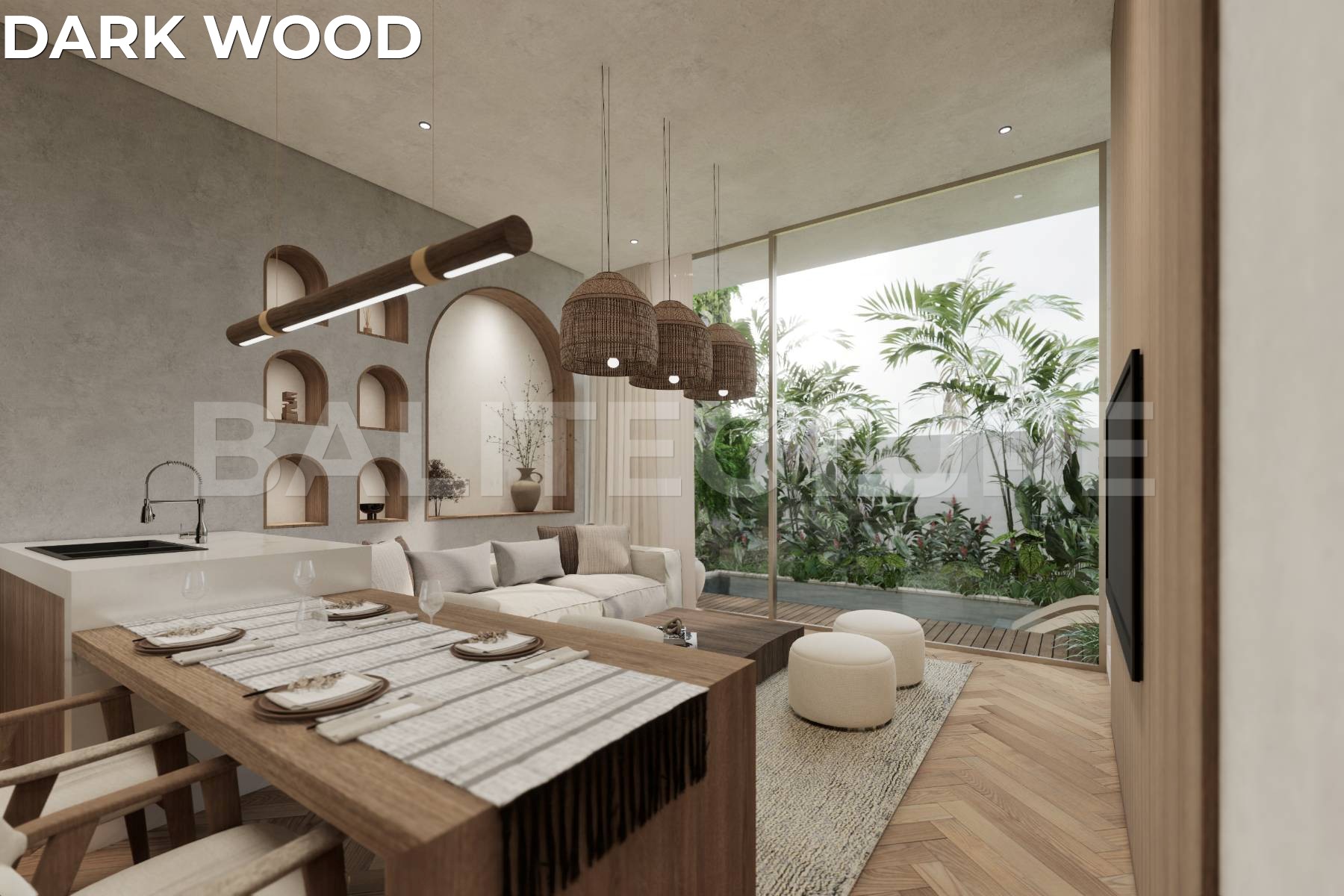 Designed by Felipe González of Sukyf Studio (Madrid, Bali, Dubai), the architecture emphasizes minimalism, natural materials, and a seamless connection between interior and nature. Each villa features two floors and a private rooftop lounge for sunset views, along with a 10.5m² pool, dedicated parking, and custom Italian furnishings. With options for Dark Wood or Light Wood designer finishes, every detail reflects timeless taste and durability.