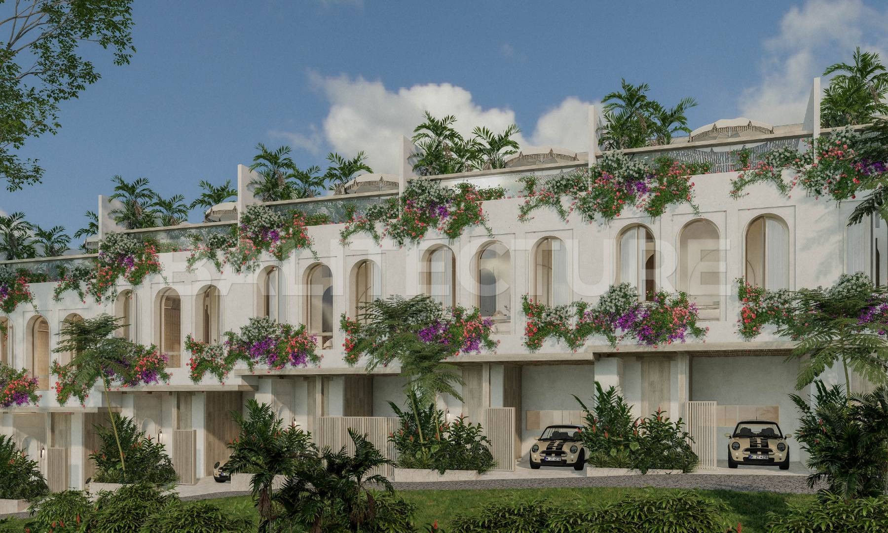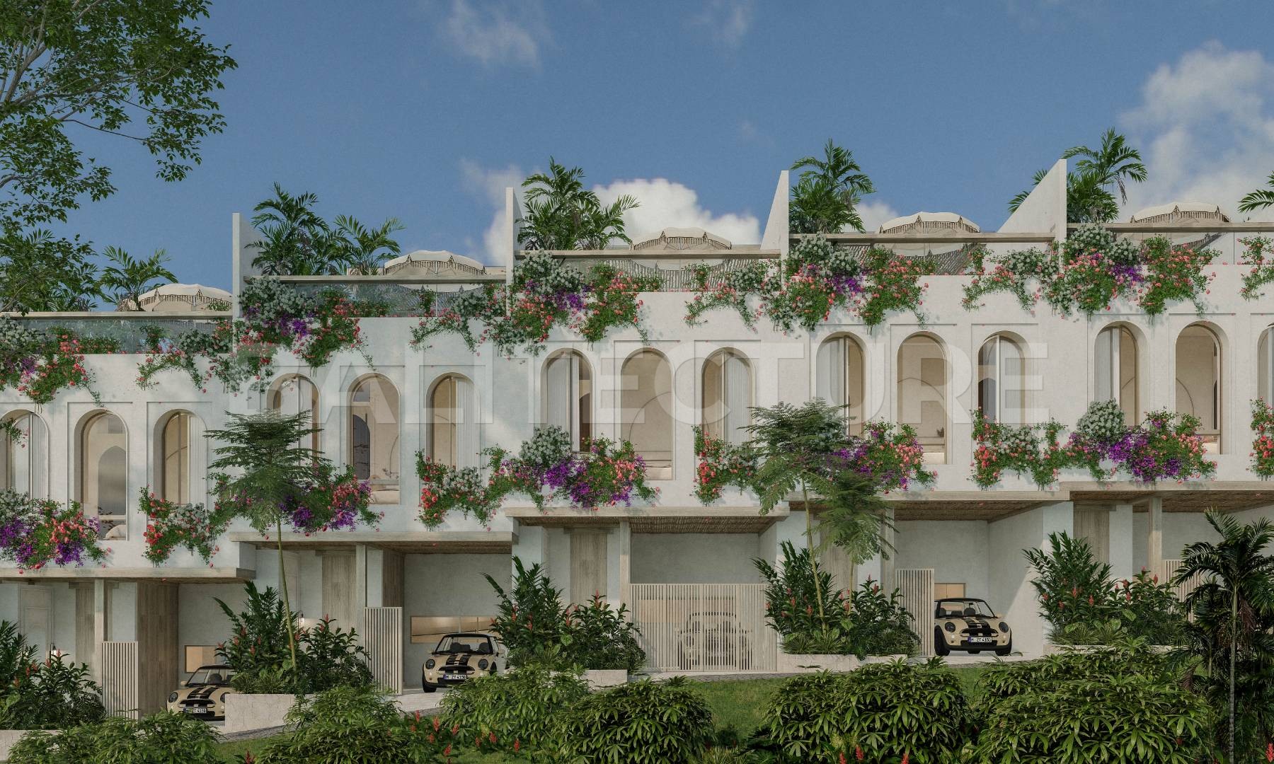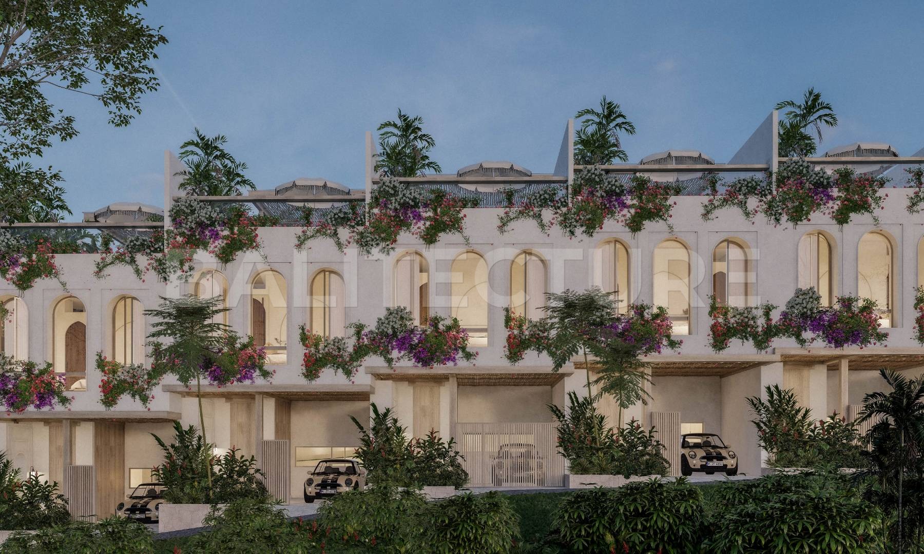 The complex embraces a community-focused concept, ideal for families and long-term residents. A 1,200m² landscaped oasis forms the heart of the property — 35% of the total area — featuring garden lounges, children’s play zones, BBQ areas, and pedestrian-only paths. Residents enjoy 24/7 gated security and a beach buggy service offering daily transfers to Melasti Beach, all included in the management package.