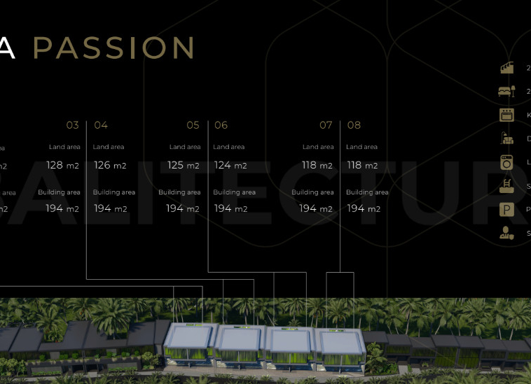 Set on a land area of 118–130 m² with a spacious 194 m² building area across two floors, Villa Passion is a fully furnished turnkey property. The villa features 2 ensuite bedrooms, an open-concept kitchen, a cozy dining and living area, a laundry room, a parking space, a private 4.9 x 2.7 m swimming pool, and 24/7 security in a gated estate, ideal for both personal use and investment.