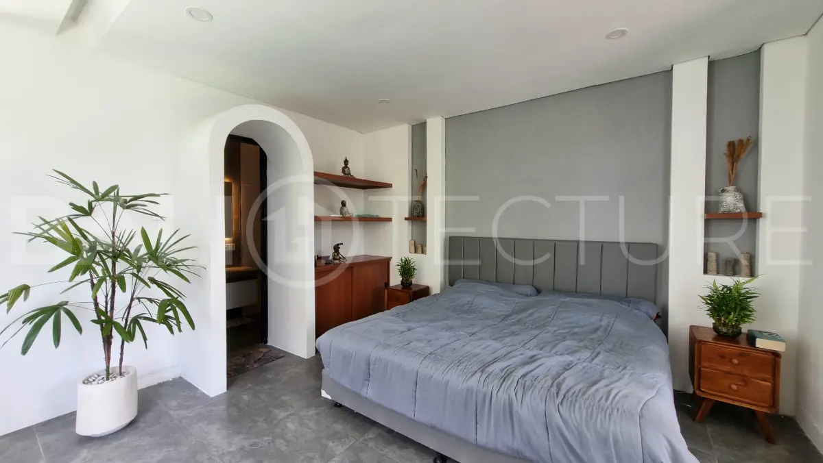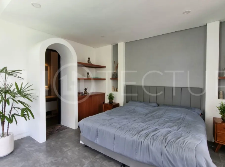 Designed with modern tropical architecture, the villa features spacious open plan living areas that seamlessly connect to the outdoor space. A private swimming pool surrounded by tropical plants provides the perfect setting for relaxation and entertaining. Both bedrooms are generously sized, each with en suite bathrooms and large windows that invite natural light and frame beautiful views of the surrounding nature.