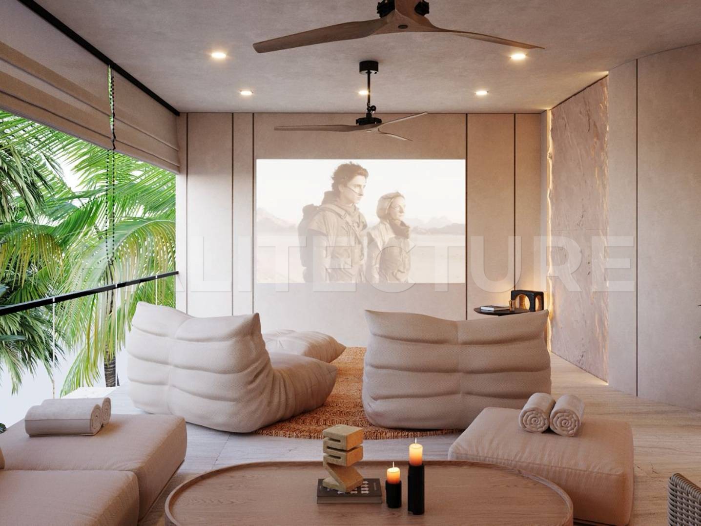 Set on 200m² of land with 300m² of living space, this beautifully designed villa offers a harmonious blend of modern architecture and tropical elegance. The layout has been thoughtfully crafted to provide comfort, privacy, and panoramic beauty from every angle. The highlight is the third-floor living area, a spacious open space designed for relaxation and entertainment, complete with a home cinema setup — the perfect place to unwind with breathtaking views.