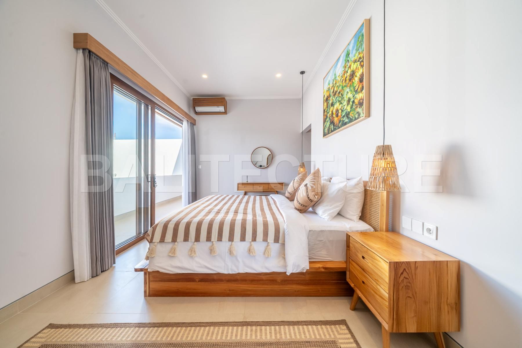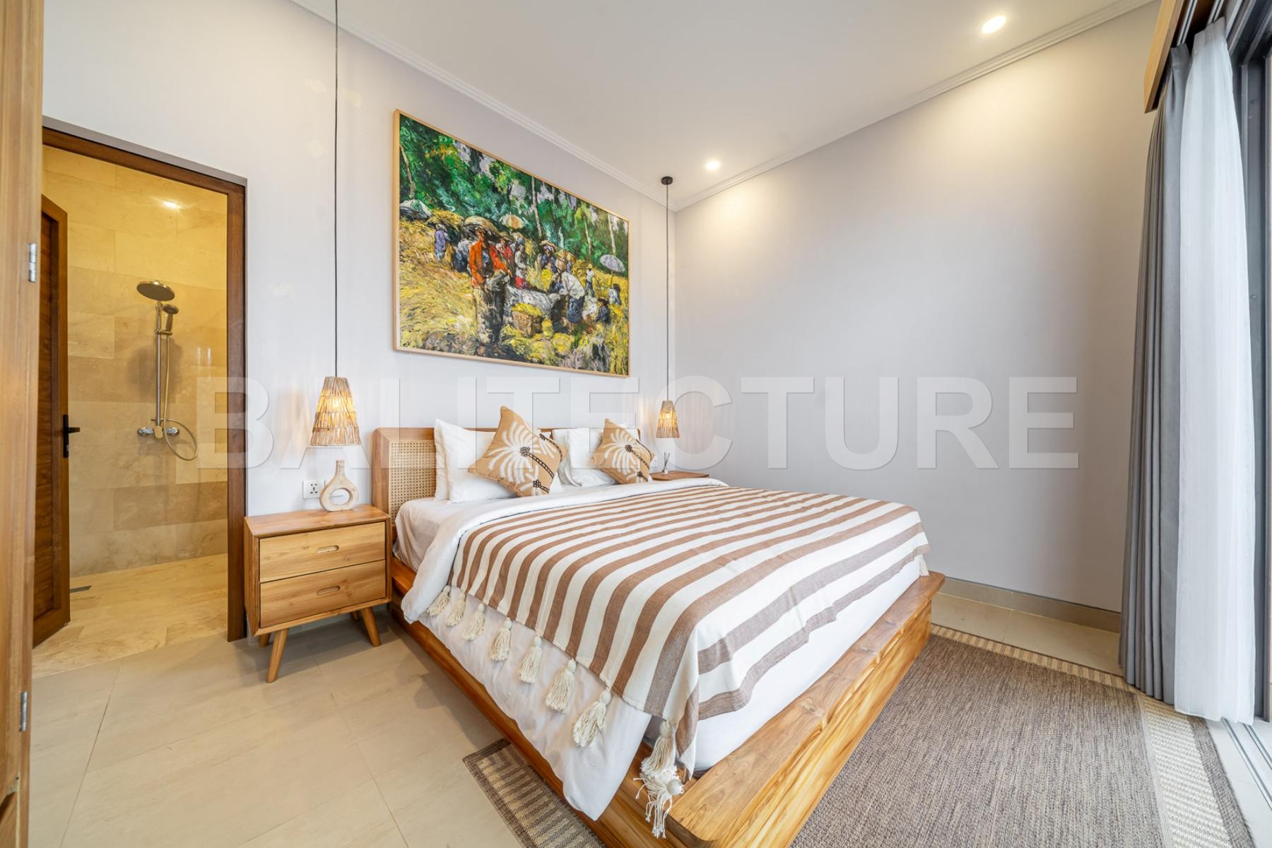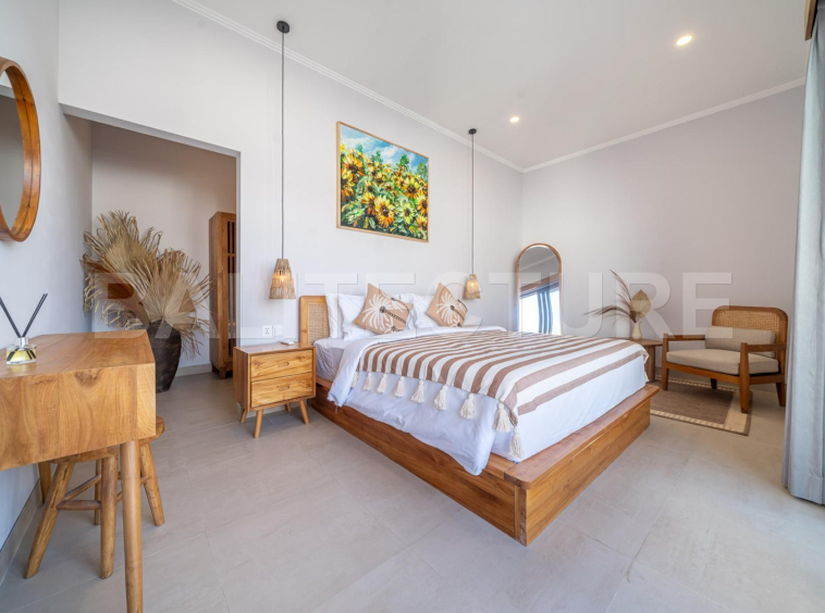 This premium villa complex is located in the heart of Sanur, Bali, just 6 minutes from the ocean. The project consists of fully completed villas offered on a secure 29-year leasehold with a 30-year extension option. Designed by an Italian architect with unique curvy shapes and no hanging wires, the villas combine modern tropical elegance with functional layouts.