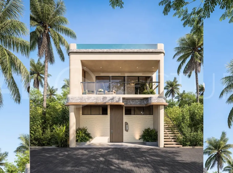 Set on 163 m² of land with 295 m² of building space, this modern tropical villa is designed for flexible use. Each level can be rented separately, creating an excellent income generating opportunity. Featuring 3 spacious ensuite bedrooms, two private pools, and a rooftop with ocean views, the villa blends privacy, luxury, and functionality.